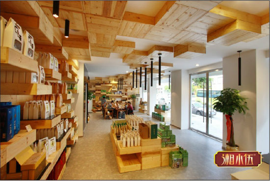 走進(jìn)位于張家界教場路郵電公寓旁的湘小伍,這是不像是一家土特產(chǎn)連鎖專賣店,而更像是品茶論食、以食會友的精致會所,窗明幾凈,裝修富有濃郁的土家特色,一嘗一飲,但往來間,俱是有緣人。聚的,就是這氛圍了。