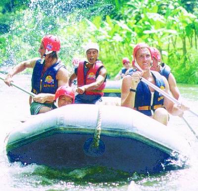 從郴州市區(qū)出發(fā)最先到達(dá)的是東江湖,160平方公里的東江湖,蓄水量82億立方米,被稱為“湘南洞庭”,又因其風(fēng)景如 畫而被譽(yù)為“東方瑞士”。在飛馳的汽車上看著一座座翠綠欲滴的山巒,湖面上飄著如玉帶般的薄霧。遠(yuǎn)處的山水是那么的寧?kù)o,像是還未蘇醒的少女,讓人不忍去驚醒她的沉靜。 途中我們觀看了一座亞洲第一拱型薄壩———東江大壩。由于它的蓄存而使整個(gè)東江湖如此寬闊,并且供給了整個(gè)中南地區(qū)的水電,從而形成西電東送。下車便到了碼頭,從碼頭我們搭乘快艇到達(dá)漂流的一座小島名為黃草鎮(zhèn)。在快艇上飛濺的水花讓人如騰空般的飛擎電馳。湖面上散落著大小不一的島嶼,竟然有不少的島上有賓館和住戶。 到了漂流的起點(diǎn),穿上橙色的救生服,我們坐上了漂流的皮筏艇,每個(gè)人心里都躍躍欲試。我們的漂流不是普通的漂流,它是由上游水電站蓄水,每次漂流前壩圍的水傾瀉而下,形成一股強(qiáng)大的水流沖激,使漂流來(lái)得更有速度,更刺激。其中有300米的滑道是最為驚險(xiǎn)的。更刺激的還在后頭,一個(gè)七米的落差就在我們面前,大家不禁瞇住眼任由皮筏向前沖去。突然間整個(gè)皮筏騰空而起,我們連驚呼都止住了,而瞬間它又從高空落了下來(lái)。水花四濺,我們像是經(jīng)歷了一次生死時(shí)速的快感,但并不恐怖,這時(shí)我們都已全身濕透了。皮筏行駛到平緩之處,慢慢欣賞山谷兩旁的風(fēng)光,小鳥和小動(dòng)物進(jìn)入我們的眼簾,碧綠的湖水清澈無(wú)比,清晰可見。我們解開救生服在水中暢游起來(lái)。呼吸山澗清新的空氣,在清水中暢游,一種久違的放松和解脫呼之欲出。